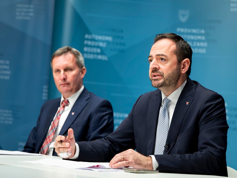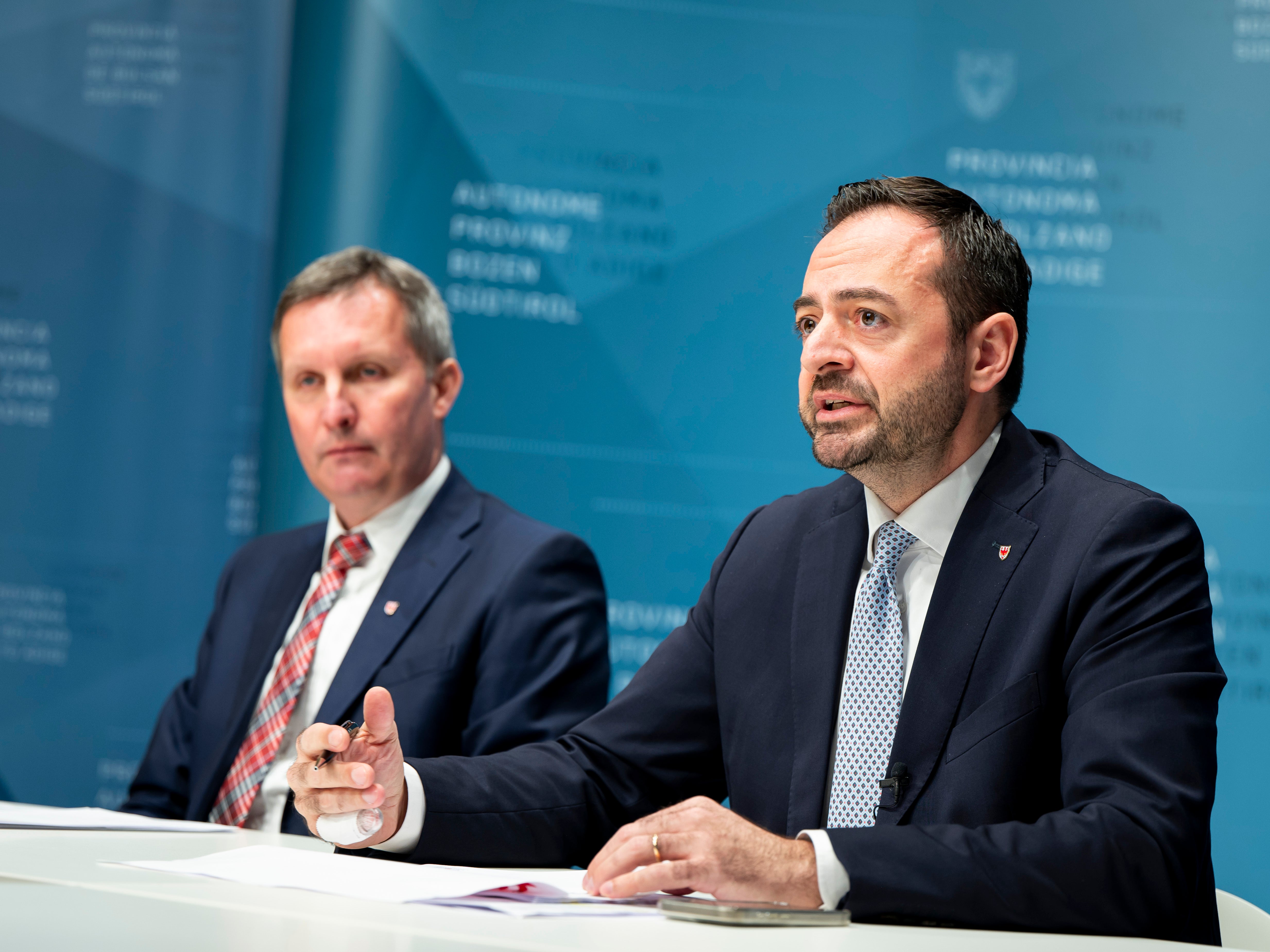 Un anno di Giunta. Gli assessori Marco Galateo e Luis Walcher hanno fornito una panoramica e presentato i loro progetti per il futuro nel corso dell'incontro con la stampa (Foto: USP/Fabio Brucculeri)