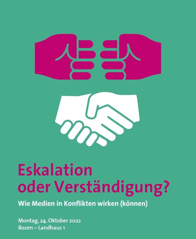 All’insegna del motto "Eskalation oder Verständigung?" lunedì 24 ottobre, presso Palazzo Widmann, Oliver Quiring, docente di comunicazione, parlerà dell’impatto dei media nelle controversie.