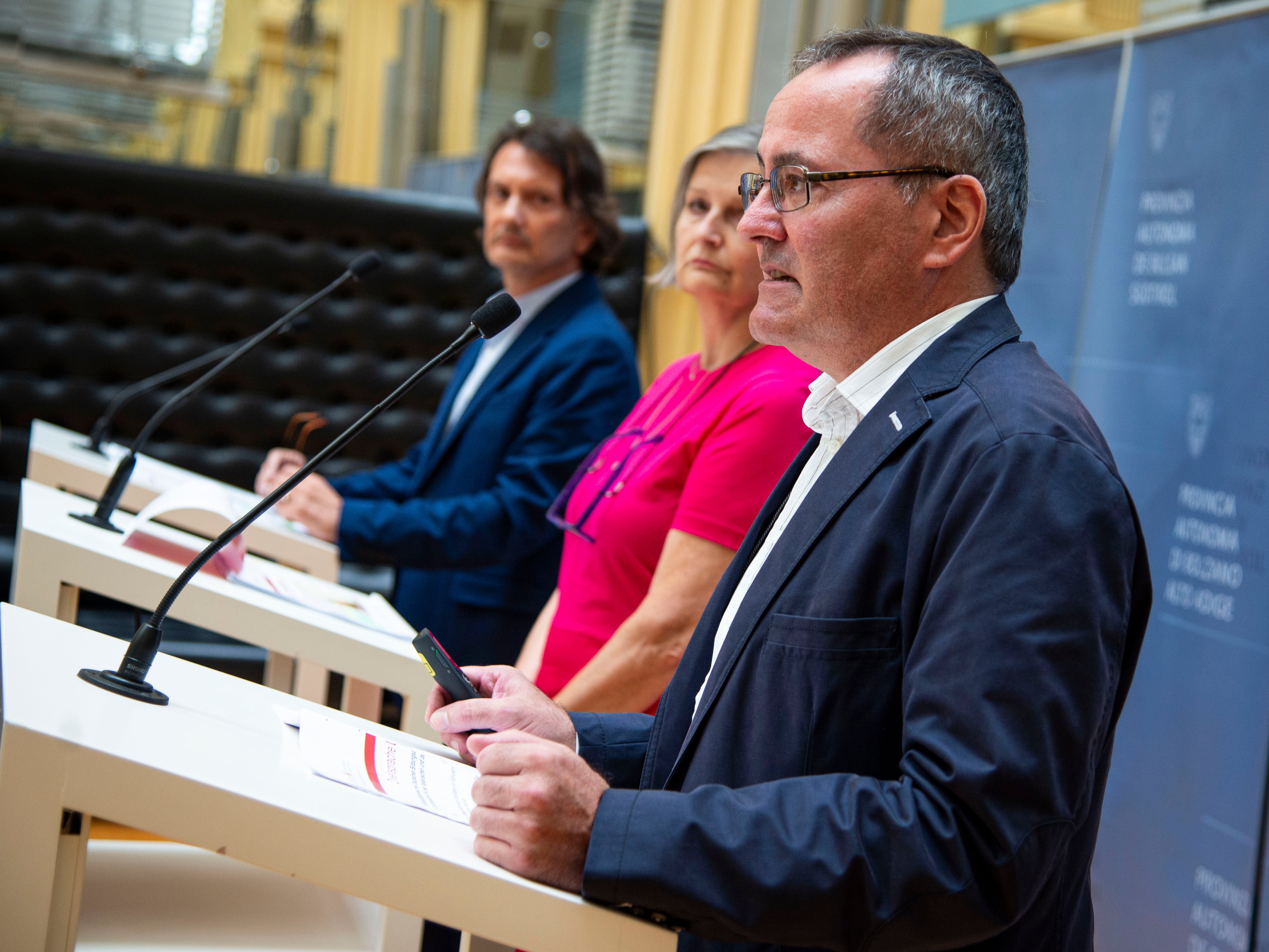 - Gli assessori Alfreider (nella foto il primo da destra), Achammer e Vettorato durante la conferenza stampa di fine anno scolastico (Foto: ASP/Fabio Brucculeri) » [IMG 2 MB]