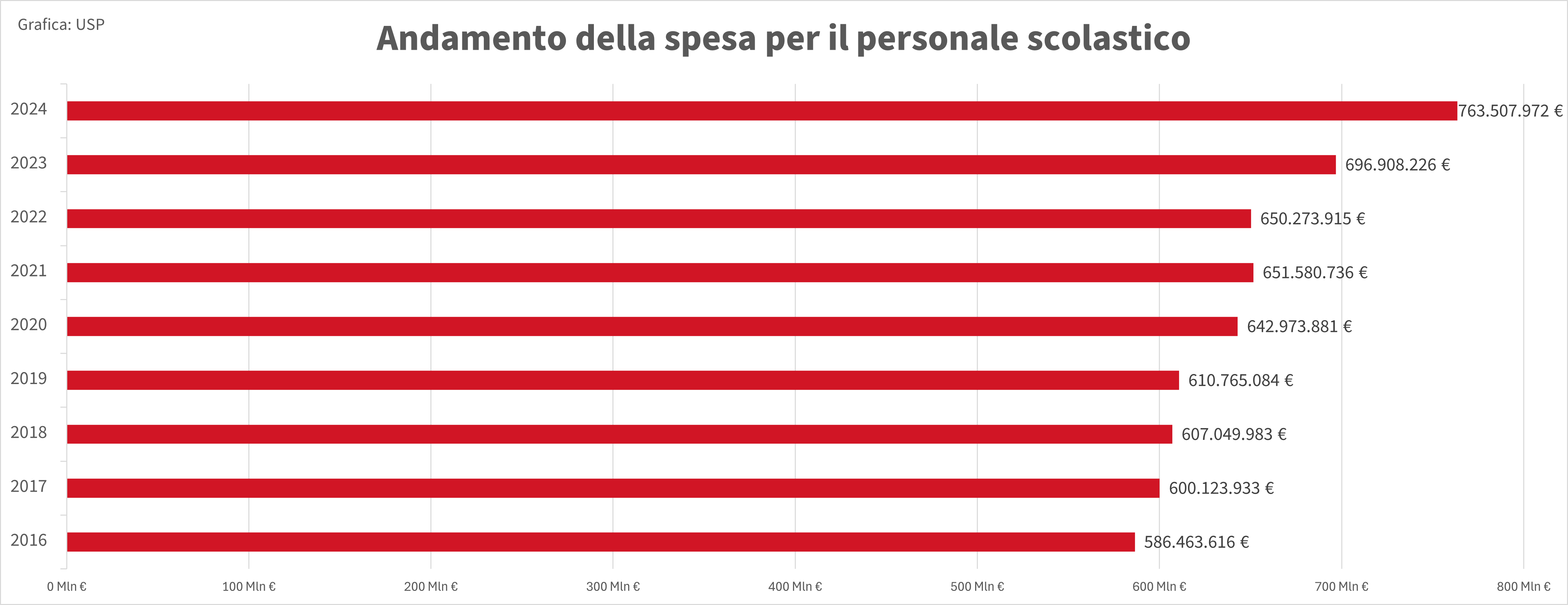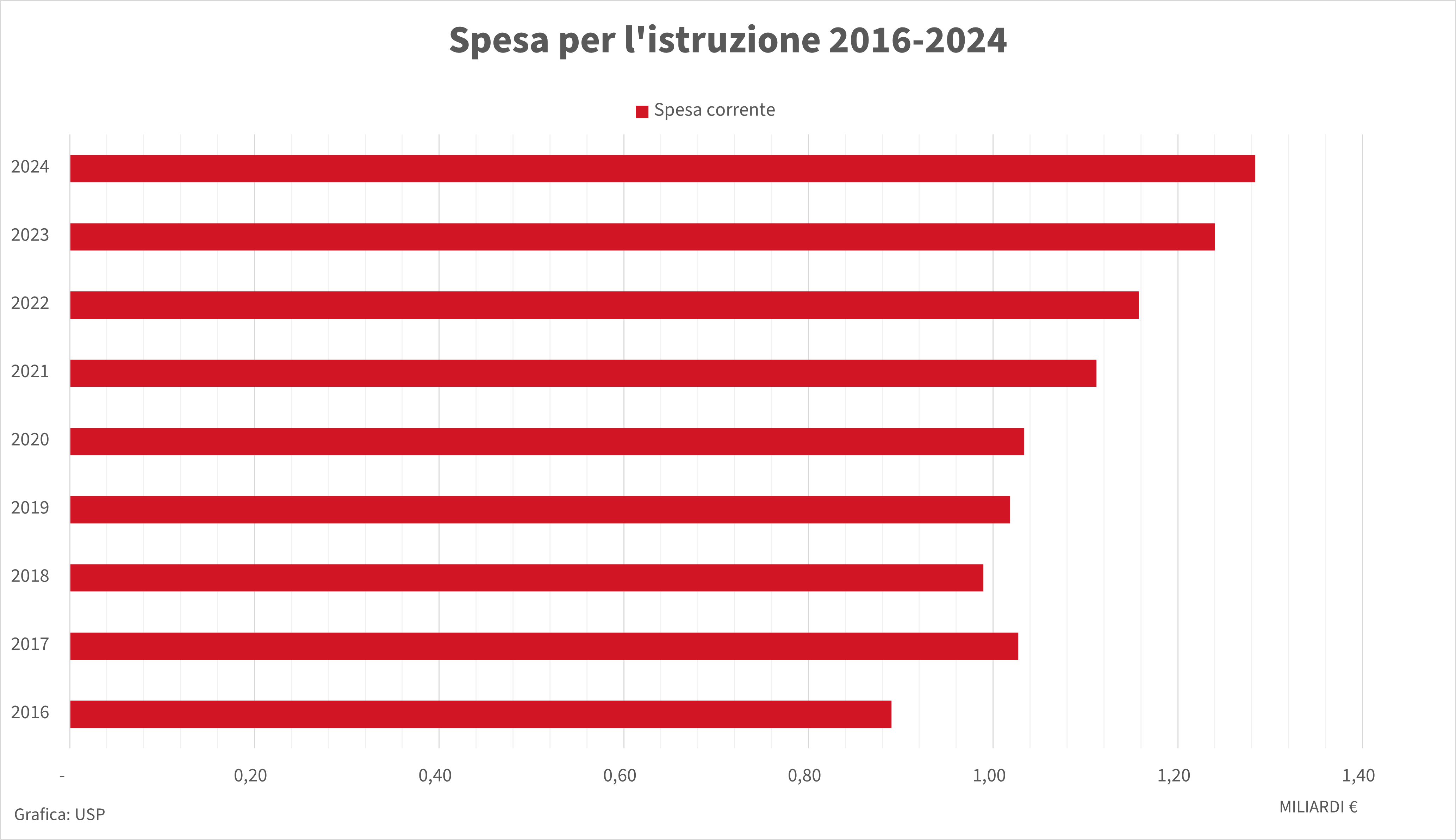 - La spesa per l'istruzione nel periodo 2016-2024. (Grafica: USP) » [IMG 95 kB]