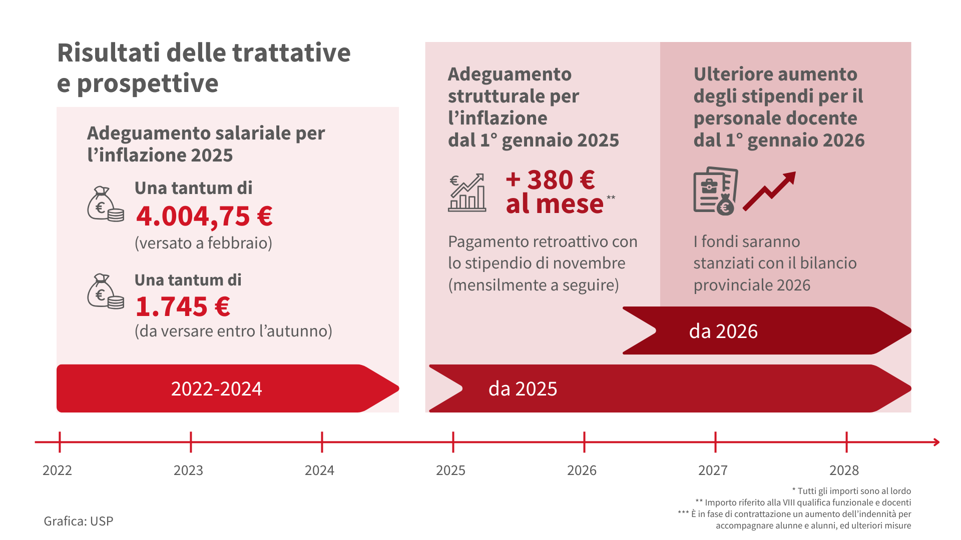 Nel Bilancio 2026, invece, prevederemo i fondi necessari per un aumento salariale strutturale per il personale docente, che entrerà in vigore già dal 1° gennaio 2026”.
