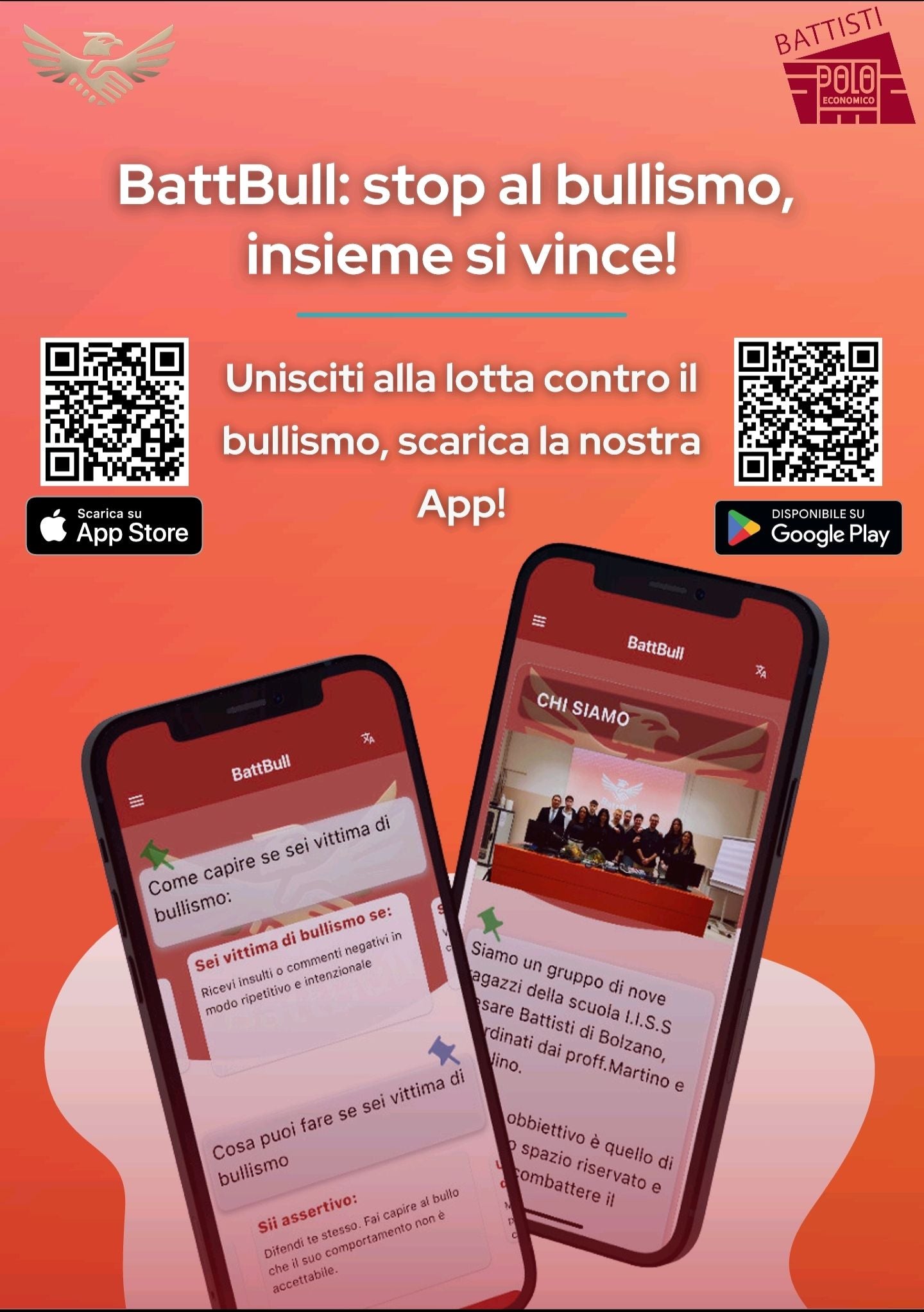 - L’app BattBull, sviluppata da studenti del Polo economico Battisti, consente la segnalazione diretta e il monitoraggio delle situazioni critiche. L’app sarà presentata alla prossima fiera “Didacta Italia”, come best practice nel settore della prevenzione. (Foto: USP/Polo economico Battisti) » [IMG 296 kB]
