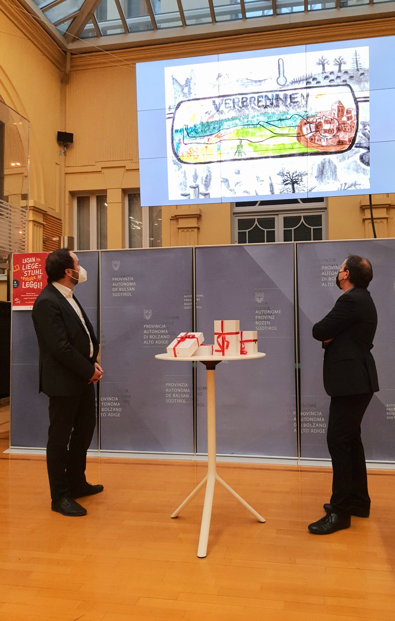 Ieri (22 dicembre) a Palazzo Widmann a Bolzano gli assessori provinciali alla cultura Giuliano Vettorato e Philipp Achammer hanno consegnato i premi principali, assegnati a sei vincitori che hanno creato un video di un minuto o un'immagine basata su uno dei libri della campagna di lettura. Una giuria di esperti ha visionato e valutato gli 87 video e le 259 foto, scegliendo i vincitori e menzionando altre due opere. I vincitori dei premi principali, ai quali è stato consegnato un I-Pad, sono Josè Luigi Bruni di Bolzano con il video "La Divina ‘Commedia riveduta e scorretta", Sofia Guerra di Bolzano che ha presentato il video "Irgendwo ist immer Süden" e Luise Murara di Bolzano che ha scelto il tema dell'ambiente proponendo il video "La vita sul nostro pianeta. Come sarà il futuro.".  Premiati inoltre Mariagiulia Levantino di Brunico per la foto "Un angelo nel taschino", Aaron Obkircher di Renon per la foto "Die Erben der Animox" e Sofie Trebo di Bolzano per l'immagine "Cryptos".
