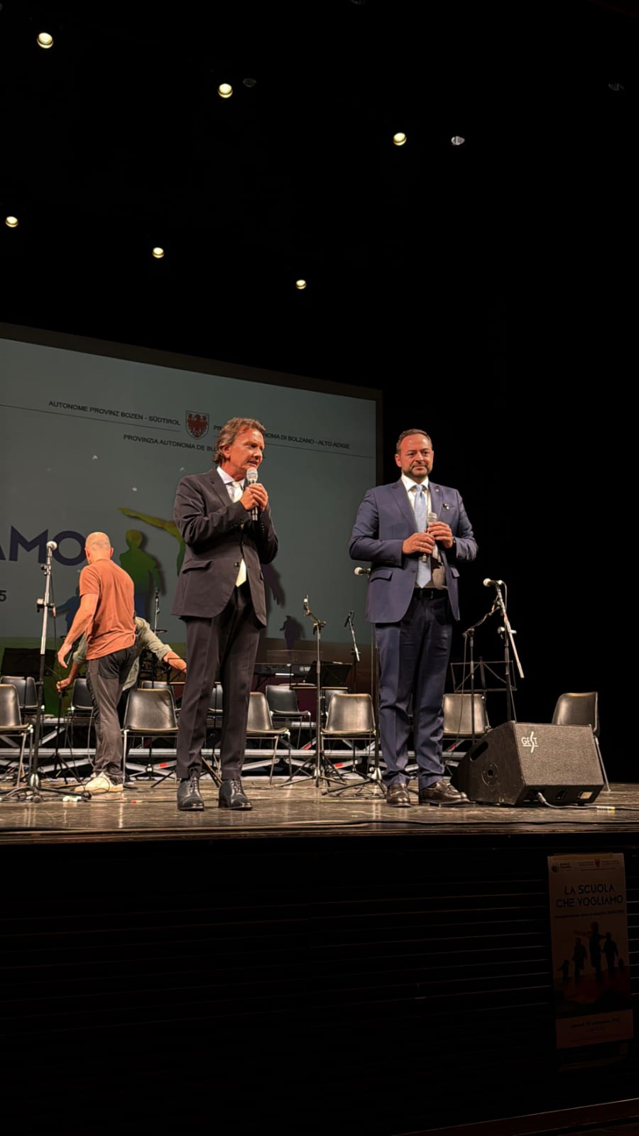 - Il sovrintendente Vincenzo Gullotta (a sinistra) e l'assessore provinciale all'Istruzione Marco Galateo inaugurano l'anno scolastico al Teatro Comunale di Bolzano. (Foto: USP) » [IMG 92 kB]