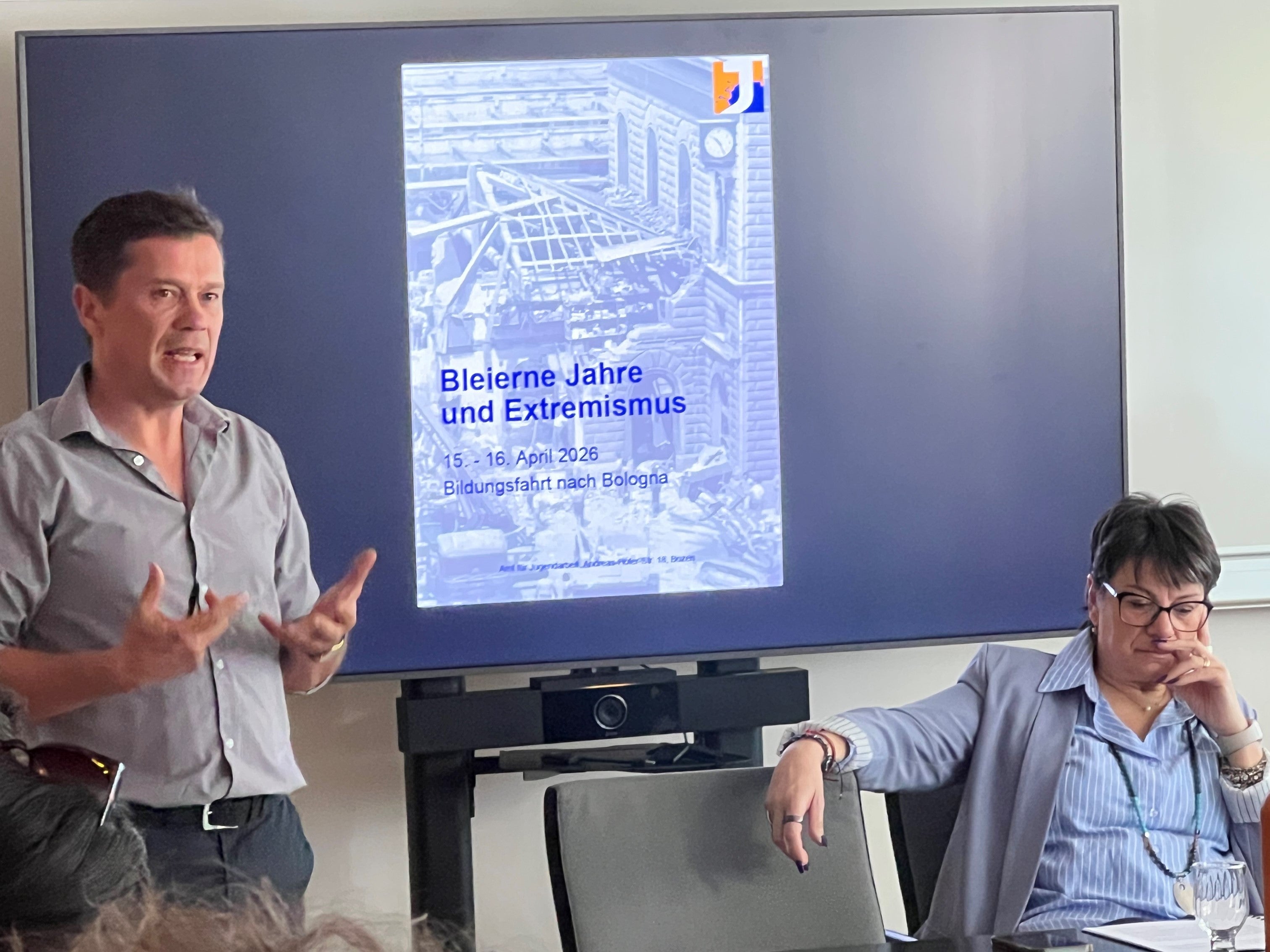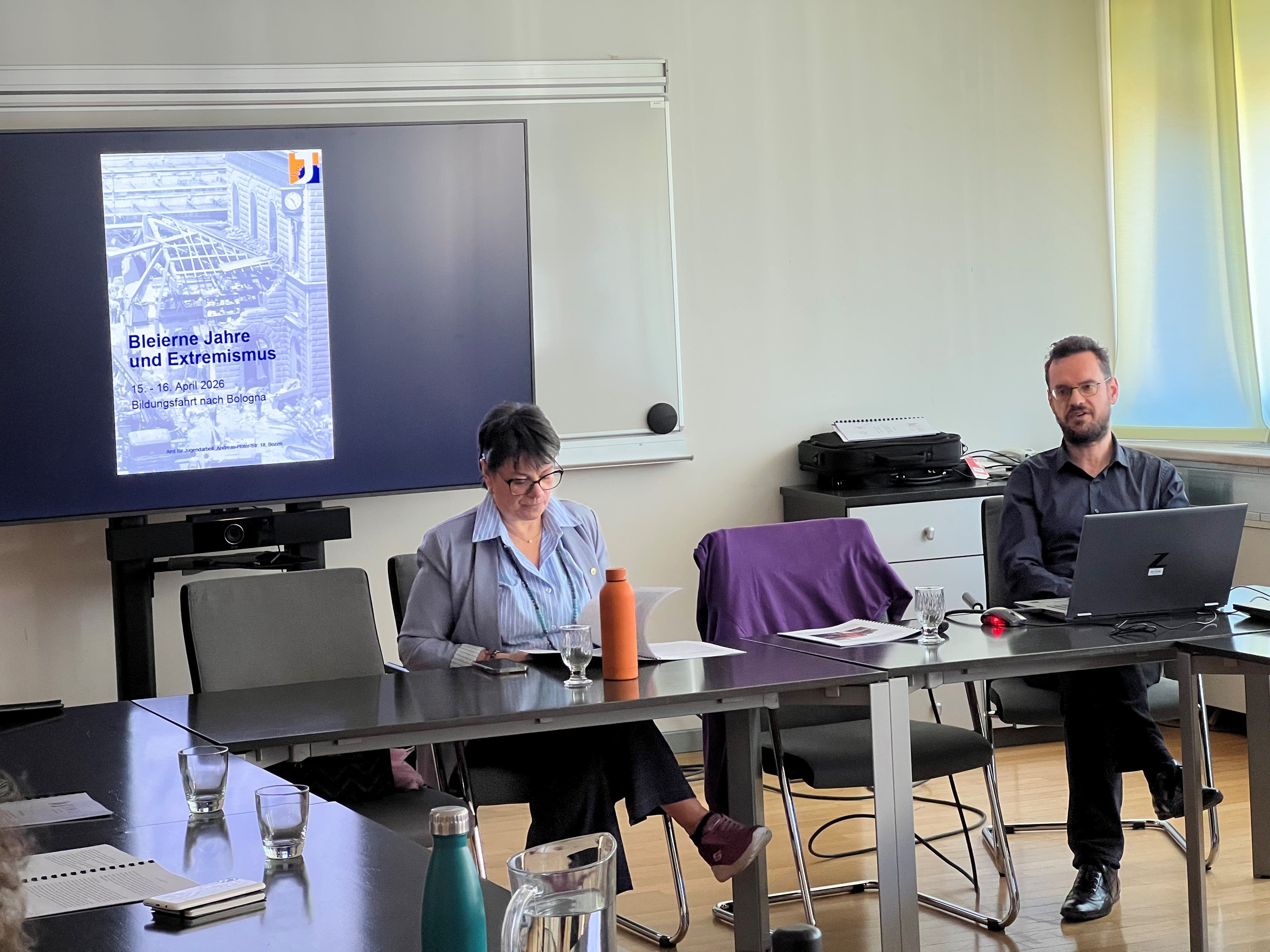 In preparazione al viaggio, già l’8 aprile i 15 partecipanti sono stati introdotti al contesto storico degli anni di piombo e alle dinamiche dell’estremismo di destra e di sinistra degli anni Settanta da Gianluca Battistel, coordinatore dell’area educazione civica presso l’Ufficio Servizio giovani della Ripartizione Cultura tedesca. Un contributo particolarmente incisivo è stato offerto da Sonia Zanotti di Ortisei, sopravvissuta all’attentato alla stazione di Bologna del 2 agosto 1980 e vicepresidente dell’“Associazione tra i familiari delle vittime della strage alla stazione di Bologna del 2 agosto 1980”. La sua testimonianza personale ha reso evidenti le conseguenze a lungo termine della violenza estremista per le persone colpite e per l’intera società.