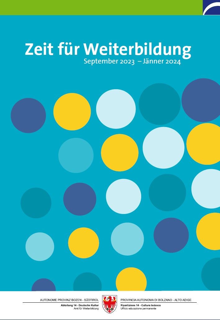 Con l'inizio della scuola a settembre, gli enti educativi annualmente offrono in tutto il territorio altoatesino una panoramica completa dell'offerta di corsi di educazione permanente contenuta nell'opuscolo autunnale "Zeit für Weiterbildung". L'edizione autunnale di 400 pagine in lingua tedesca propone agli interessati una vasta gamma di corsi in diverse aree tematiche, dalla qualificazione professionale alle lingue, oltre a offerte per imparare a utilizzare il digitale e corsi riguardanti la salute e la cura della persona.