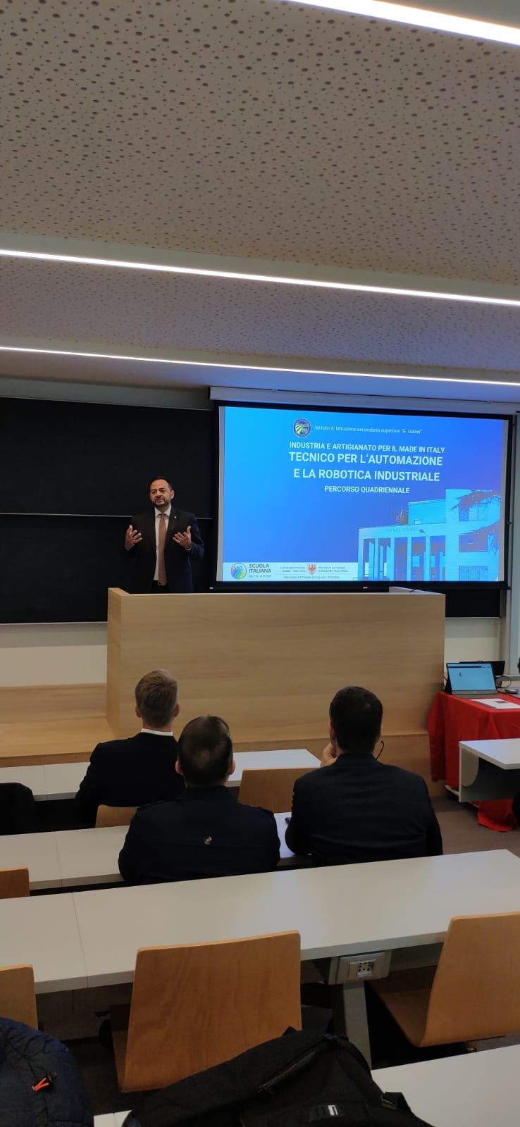 BOLZANO (USP). L’Istituto Galileo Galilei ha presentato oggi (18 ottobre) il nuovo percorso quadriennale di Istruzione Professionale - Industria e Artigianato per il Made in Italy, con specializzazione in Automazione e Robotica Industriale. “Si tratta di un progetto davvero innovativo”, sottolinea Marco Galateo, vicepresidente della Provincia e assessore all’istruzione, “che risponde concretamente alle richieste sempre più avanzate del mondo del lavoro”. Il nuovo indirizzo si svilupperà nel corso di quattro anni e permetterà un alto livello di personalizzazione, come ha spiegato la dirigente Paola Burzacca. “Studentesse e studenti avranno la possibilità di personalizzare il proprio percorso, attraverso la scelta di un modulo opzionale obbligatorio. Potranno scegliere tra Robotica e Intelligenza Artificiale, Prototipazione e stampa 3D, Transizione ecologica e sostenibile.”. Il nuovo indirizzo utilizzerà metodologie didattiche innovative e prevede una stretta collaborazione con aziende del territorio, in particolare Omron e Acciaierie Valbruna. Sono cinque i laboratori a disposizione, dedicati ad aspetti differenti delle fasi produttive, che permetteranno agli iscritti di imparare facendo (learning by doing).