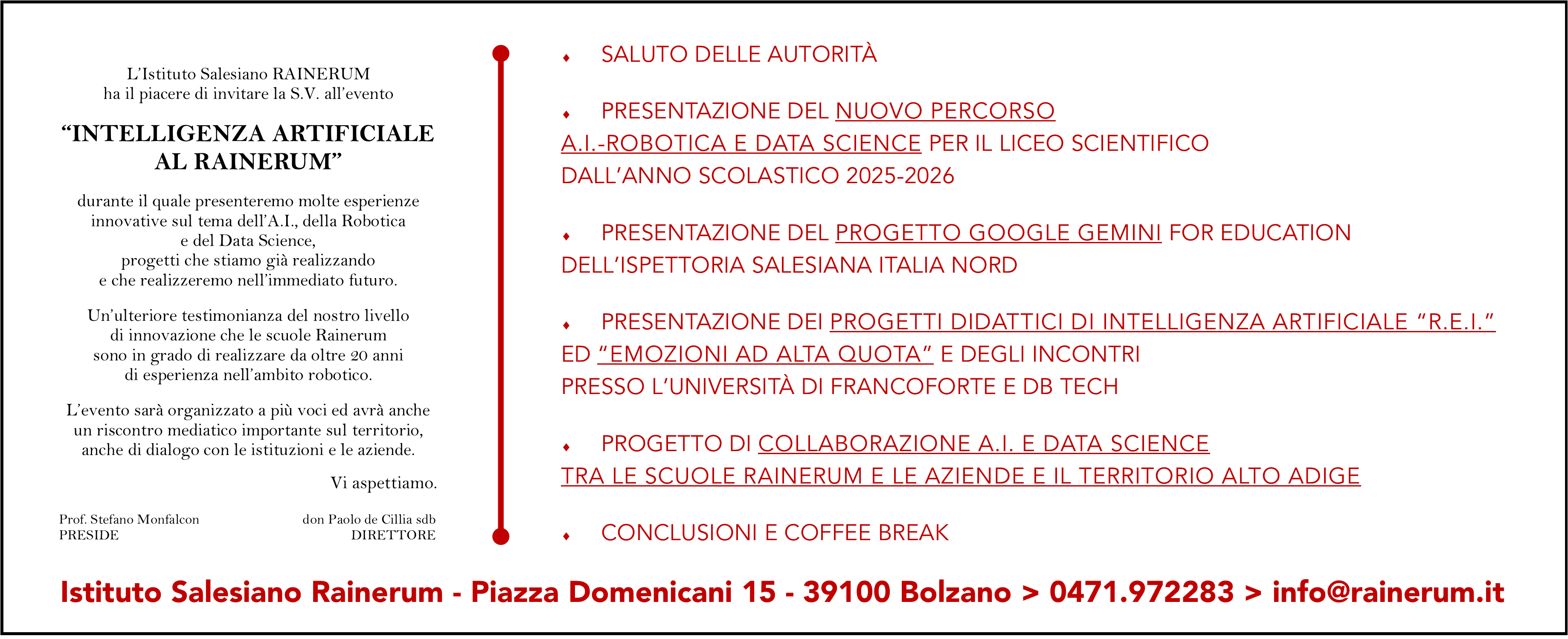 L’Istituto Rainerum di Bolzano ha scelto di introdurre le esperienze con l’IA nei propri percorsi scolastici, attivando dal prossimo anno scolastico 2025/26 una serie di progetti didattici trasversali che saranno presentati venerdì 30 maggio a Bolzano. (Foto/locandina: Rainerum)