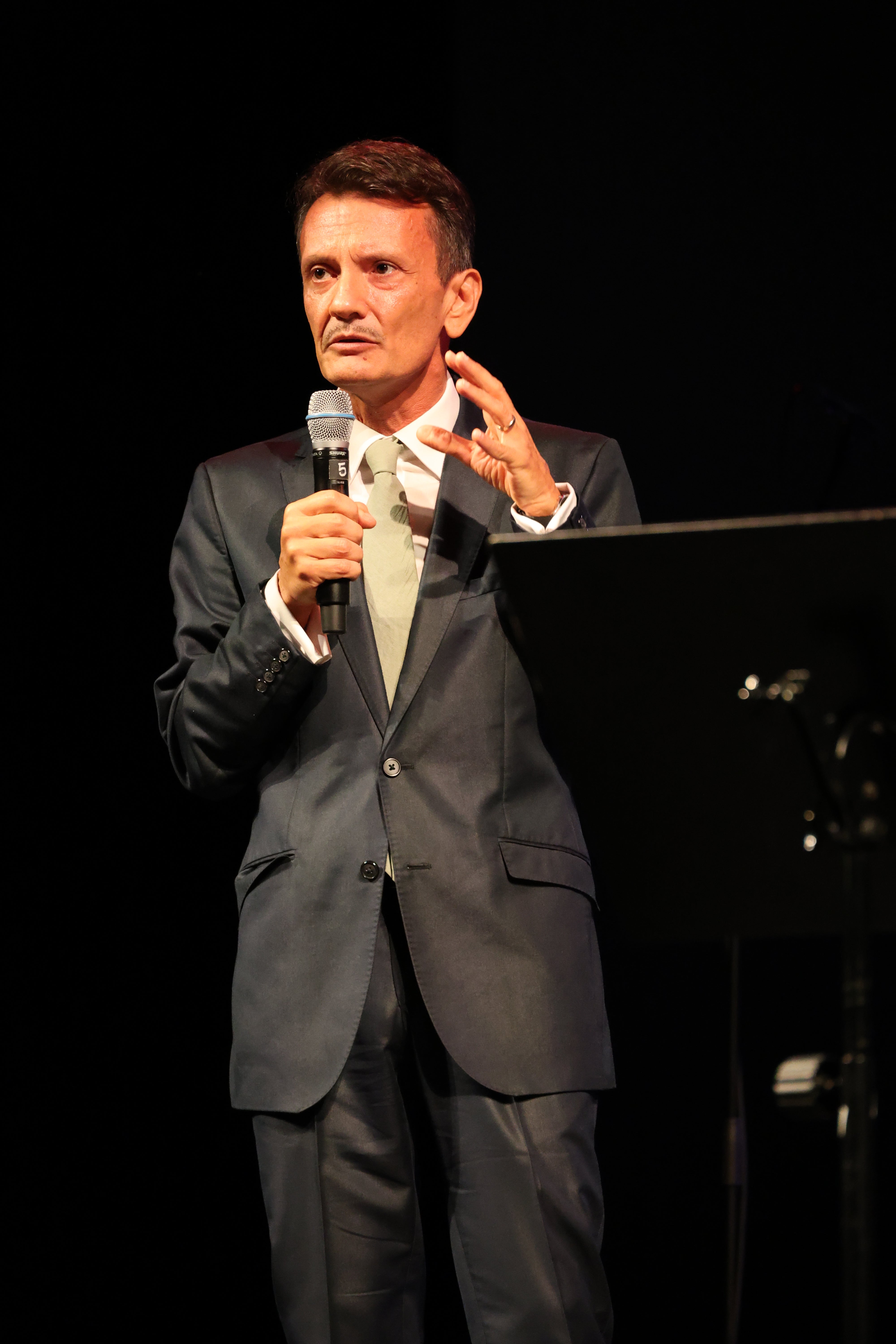 - Il vicepresidente Marco Galateo ha ricordato dal palco del Teatro Comunale che la scuola “è un luogo di apprendimento e di crescita, una casa per imparare, per crescere, per costruire relazioni autentiche. La scuola non è solo un edificio, ma un simbolo: un luogo dove le idee prenderanno forma". (Foto: USP) » [IMG 5 MB]